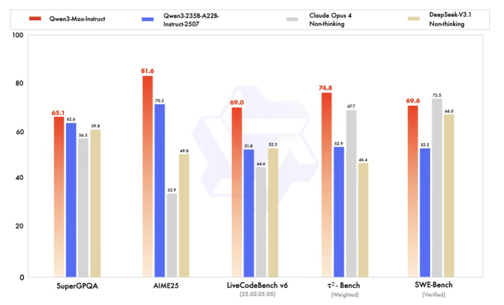 Alibaba présente Qwen3-Max, son modèle de langage le plus grand avec 1 trillion de paramètres, disponible en modes Instruct et Thinking. Il se classe parmi les meilleurs modèles sur les benchmarks SWE-Bench (69,6 points) et Tau2-Bench, démontrant des performances avancées en génération de code et en création d’agents autonomes.